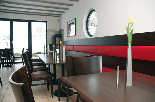 inkl. Nutzung der Küche, ausgestattet mit komplettem Geschirr für 50 Personen, Geschirrspühler, Kühltheke.